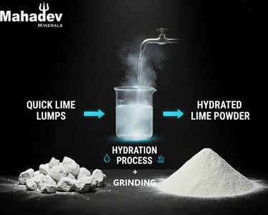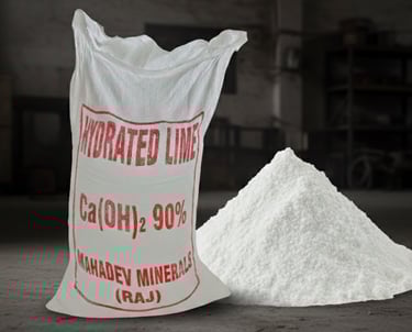 Hydrated Lime, also known as Calcium Hydroxide (Ca(OH)₂), is a versatile and essential industrial chemical widely used across multiple industries. At Mahadev Minerals, we manufacture and supply high-quality hydrated lime with consistent purity, high calcium content, and excellent reactivity.